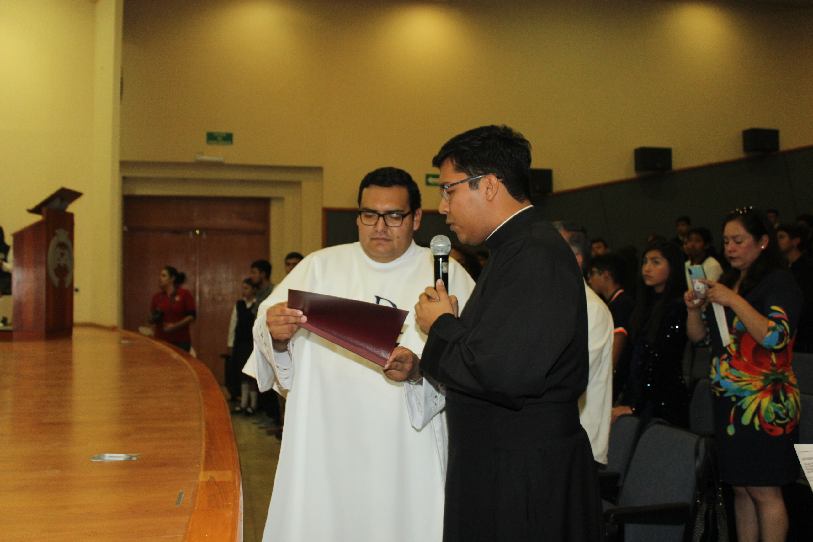 Al concluir la eucaristía, Carlos Arturo dirigió unas palabras de agradecimiento a los presentes, donde recordaba algunos momentos importantes en su proceso formativo, los escolapios que le acompañaron en sus etapas de formación, sus vivencia familiar y haciendo mención especial, agradeció a sus alumnos por estar presente en ese momento y abrirle su corazón desde el vivir día a día en el colegio.